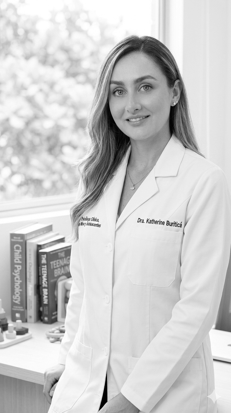 Soy Katherine Buriticá, Psicóloga Clínica especialista en niños y adolescentes.